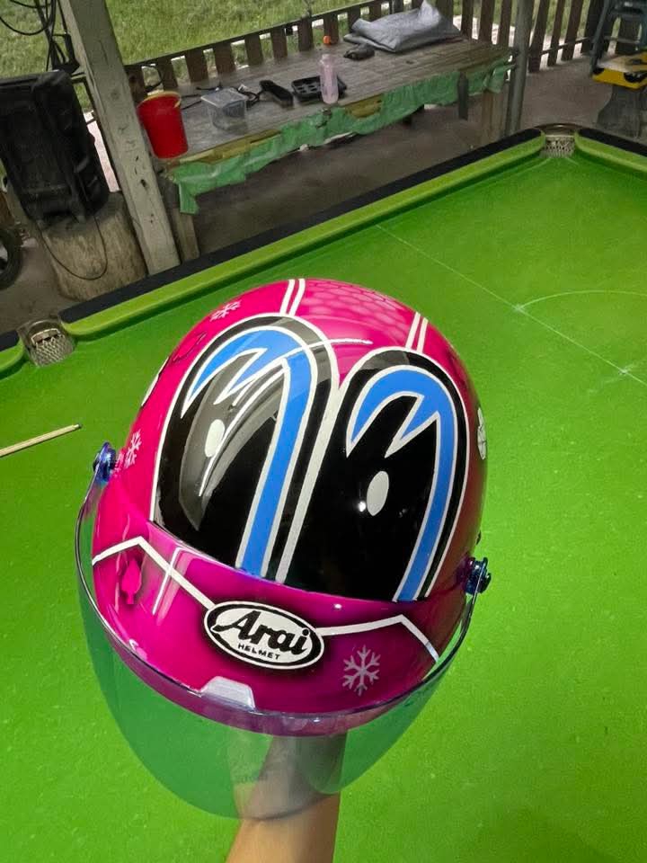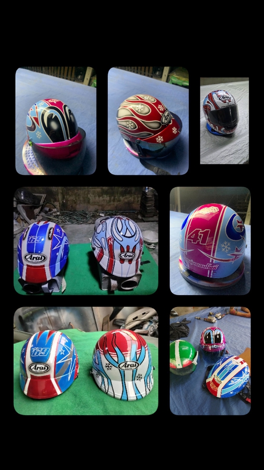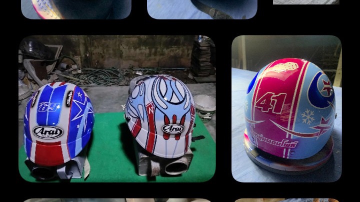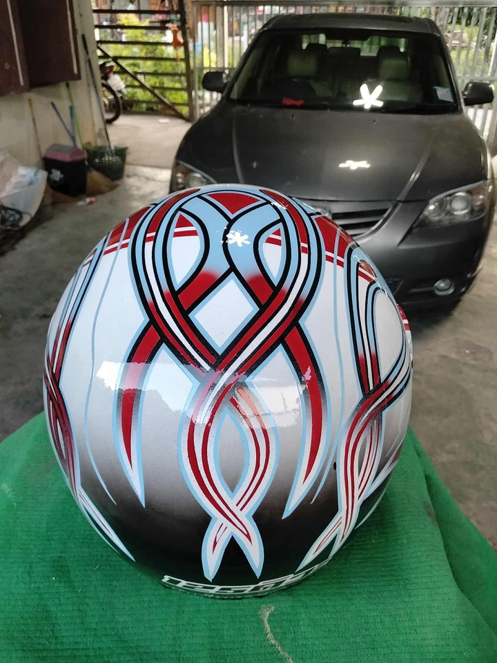 รับเพ้นท์ลายหมวกกันน็อคหรืออื่นๆทักมาสอบได้ครับเป็นงานสี2kเกรดเดียวกับรถยนต์ครับ