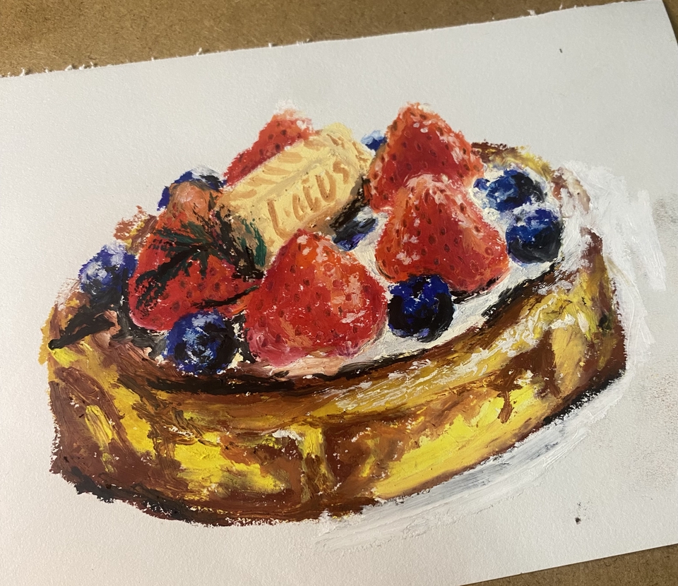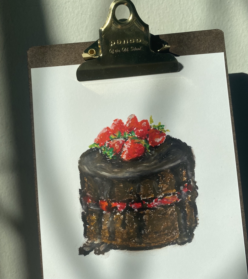 เป็นการวาดภาพขนม/เครื่องดื่มโดยใช้เทคนิคสีชอล์คน้ำมัน(ด้วยมือลงกระดาษ) เพื่อเป็นการตกแต่งร้าน หรือนำไปใช้ในเชิงพาณิชย์ นำเสนอสินค้า เป็นภาพประกอบเมนูขนมในร้าน โดยจำเป็นที่จะต้องอาศัยภาพต้นแบบจากทางผู้จ้าง ขั้นตอนการทำงาน 1. ลูกค้าส่งตัวอย่างงาน (เป็นตัวอย่างรูปที่ต้องการให้วาด) 2. ดำเนินการวาด 3. ส่งให้ลูกค้าตรวจสอบ 4. เพิ่มลด/แก้ไขงาน 5. ส่งงานจริงให้ลูกค้าทางไปรษณีย์