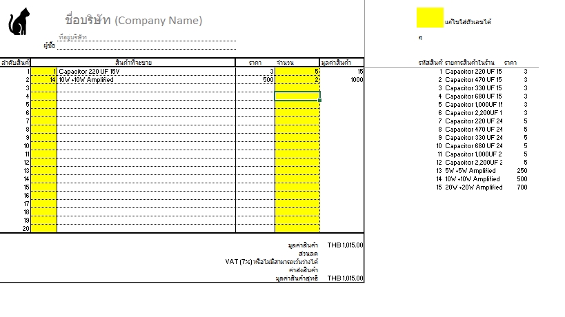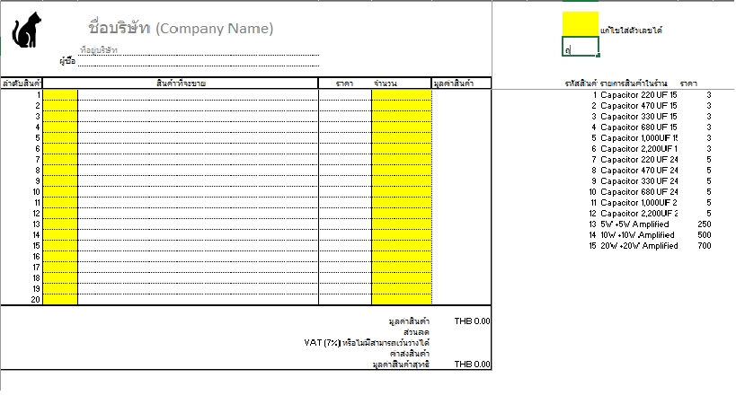 ไฟล์ Excel สำหรับการรับออเดอร์ในร้านค้า
