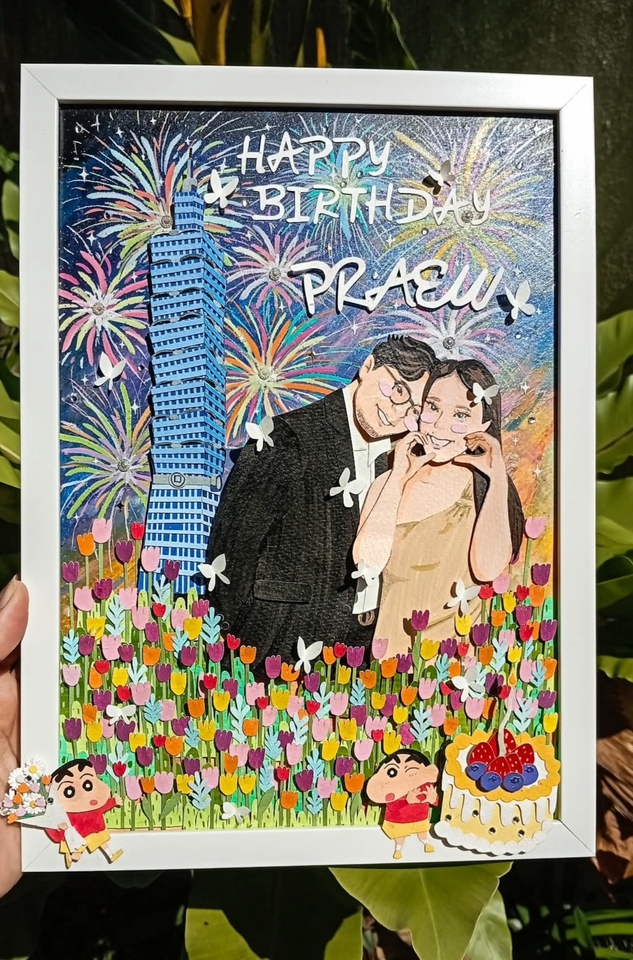฿1,0501.ชิ้นงานประกอบไปด้วย - ตัวการ์ตูน 1 ตัว กรณีอยากเพิ่มตัวการ์ตูน คิดเพิ่มตัวละ 80 บาท สัตว์เลี้ยงตัวละ 50 บาท - ตกแต่งองค์ประกอบได้ตามที่ลูกค้าต้องการ สามารถแจ้งรายละเอียด เช่น สี ของตกแต่ง - ฟรีไฟล์รูปการ์ตูน - ค่าส่ง 60 บาท 2. กรอบรูป มี3 แบบ - กรอบลึก (ด้านหน้าเป็นแผ่นพลาสติกใส ไม่ใช่กระจก) ราคา 120 บาท - กรอบลึก (กระจก) ราคา 160 บาท - กรอบแบน (ไม่มีกระจก) ราคา 110 บาท 3. กรณีงานด่วน บวก 100 บาท