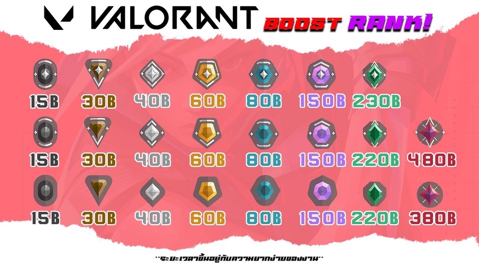 𝗩𝗔𝗟𝗢𝗥𝗔𝗡𝗧 𝗕𝗢𝗢𝗦𝗧 𝗥𝗔𝗡𝗞 👑 ✅ ไม่ใช้โปรแกรมช่วยเล่น ✅ เล่นด้วยฝีมือตัวเอง ✅ ราคาถูก ปลอดภัย 100% ✅ บริการ รับเปิดแรงค์ 5 เกม **ระยะเวลาขึ้นอยู่กับความยากง่ายของงาน 💭 ซัพพอตหลังการใช้บริการ
