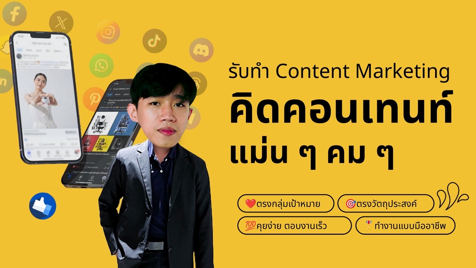 ฿890พร้อมโพสต์ได้เลย🤩 คิดคอนเทนท์ ตาม Mood & Tone และสื่อสารตามเป้าหมายแบรนด์ คม ๆ แม่น ๆ ตามโจทย์งาน🎯 1. ใช้ภาพที่ถูกลิขสิทธ์ ทางแบรนด์เป็นเจ้าของ Asset 2. เขียน Copy Writing ด้วยภาษามนุษย์ที่มีหัวใจ