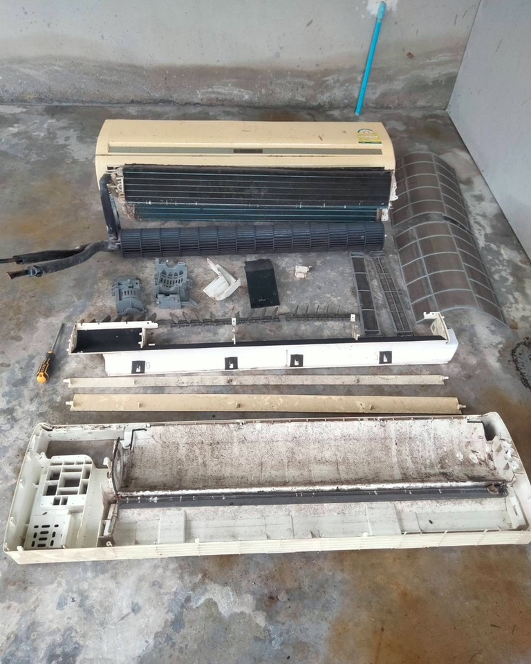 ล้างแอร์ แบบ (ตัดล้าง) ถอดชิ้นส่วนออกมาล้าง