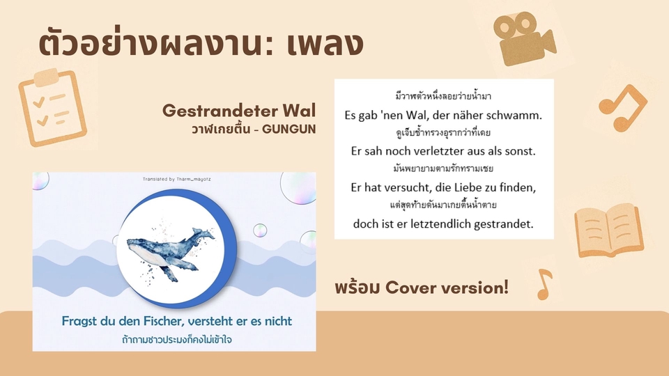 รับแปลบทความ นิยาย เพลง ซับไตเติ้ล สื่อบันเทิง เยอรมัน - ไทย - อังกฤษ 🇩🇪 🇹🇭 🇬🇧