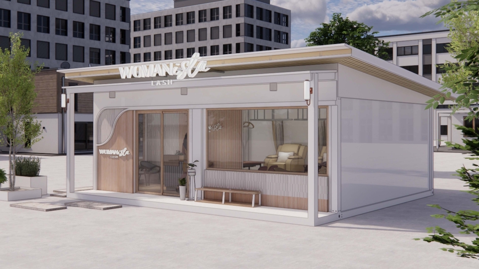ออกแบบ ร้านทำเล็บ ร้านต่อขนตา โครงน็อคดาวน์ 6*8 เมตร