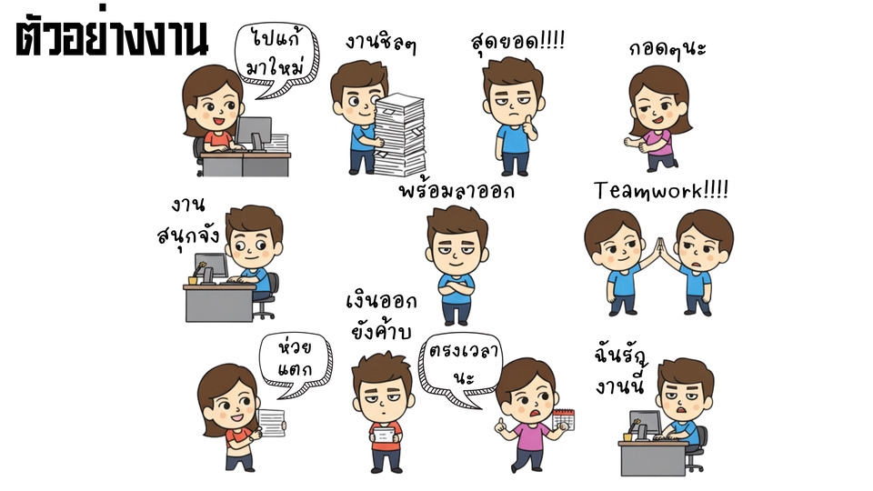 🎨 ออกแบบสติ๊กเกอร์ไลน์ ราคาประหยัด เริ่มต้นเพียง 1,000 บาท รับออกแบบสติ๊กเกอร์ไลน์ตามความต้องการของลูกค้า ออกแบบตัวละคร ท่าทาง และคำพูดครบ พร้อมนำขึ้นสโตร์ได้ทันทีโดยไม่มีค่าใช้จ่ายเพิ่มเติมครับ 💰 แพ็กเกจราคา 8 ตัว ระยะเวลา 2-3 วัน — 1000 บาท (แก้ไขได้ 3 ครั้ง) 16 ตัว ระยะเวลา 3-4 วัน — 2,000 บาท (แก้ไขได้ 4 ครั้ง) 24 ตัว ระยะเวลา 4-5 วัน — 3,000 บาท (แก้ไขได้ 5 ครั้ง) 32 ตัว ระยะเวลา 5-6 วัน — 4,000 บาท (แก้ไขได้ 6 ครั้ง) 40 ตัว ระยะเวลา 6-7 วัน — 5,000 บาท (แก้ไขได้ 7 ครั้ง) ***งานด่วน(เอาภายในวันนั้น) เพิ่มราคาเริ่มต้น 600 บาท (คิดเพิ่มตามจำนวนและความยาก) (สติ๊กเกอร์ตามจำนวนที่เลือกรูป + รูปหน้าปกโชว์ในร้าน 1 รูป + รูปไอคอนใช้งาน 1 รูป) ⚙️ ขั้นตอนการทำงาน ออกแบบเบื้องต้นให้เลือก และแก้ไขตามจำนวนครั้งที่กำหนดจนกว่าจะพอใจ ตรวจสอบท่าทางและอารมณ์ให้ตรงกับที่ลูกค้าต้องการ ส่งงานฉบับสมบูรณ์ให้ตรวจสอบและแก้ไขรอบสุดท้าย ส่งไฟล์ .ZIP พร้อมใช้งานและอัปโหลดขึ้น LINE Store ได้ทันที หากลูกค้าไม่เคยอัพโหลด sticker line เอง ทาง freelance จะส่งวิธีทำให้ ถ้าหากลูกค้าต้องการให้ freelance อัพโหลดให้ สามารถทำให้ได้ฟรีไม่มีค่าใช้จ่าย (แต่สติ๊กเกอร์ของลูกค้าจะอยู่หน้า store ของ freelance)