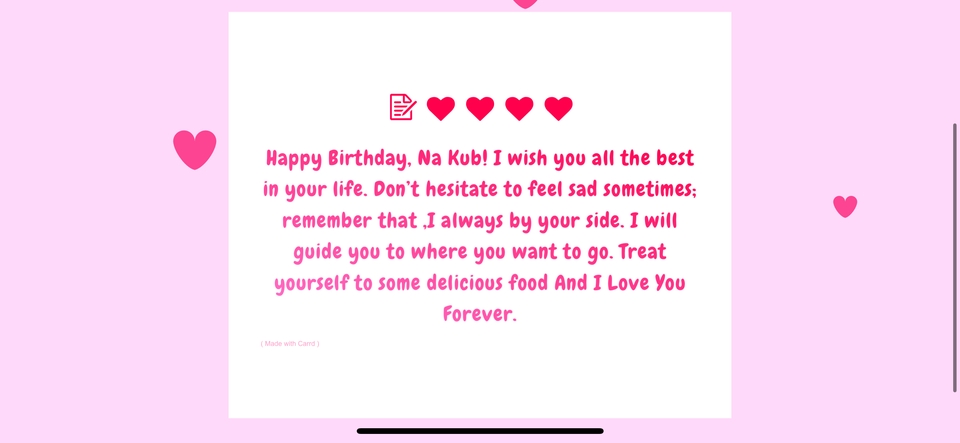 การใส่รูปภาพพิมคำอวยพรหรือการเซอไพร์ต่างๆในรูปแบบของการ์ดบนเว็ปไซต์ จุดเด่นคือรวดเร็ว ทันใจ สามารถส่งลิ้งค์ให้ผูัที่ลูกค้าต้องการส่งให้ได้ทันที 1.เลือกรูปแบบของการ์ด 2.บรีฟการทำการ์ด 3.ส่งรายละเอียดต่างๆและเลือกลูกเล่นของการ์ด 4.เลิอก1ใน3แบบของงานที่ทางเราส่งไป หากไม่โอเคกับการ์ดสามารถแก้ไขได้ 4. ขั้นตอนการทำงาน 1. รับบรีฟจากลูกค้า 2. ลูกค้าส่งรายละเอียดเช่น รูปภาพ 3. รับงานได้เลย สามารถแก้ไขงานได้