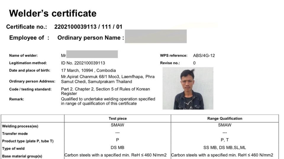 สอบช่างเชื่อมตาม ASME/AWS/ISO หรือ ข้อกำหนดลูกค้า