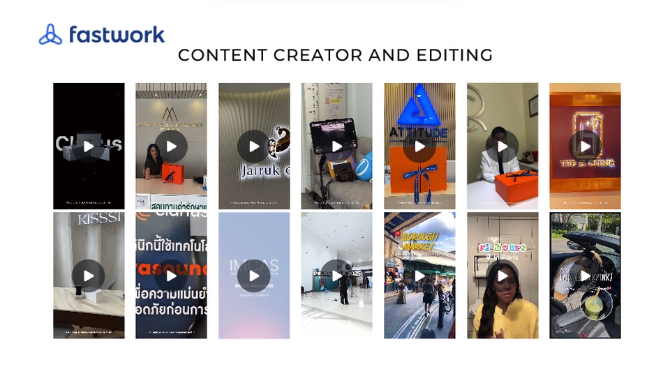 ตัดต่อ เกรดสี ออกแบบเสียง ใส่ซับต่างๆ สำหรับคอนเท้นต์ลง tiktok youtube หรือคอนเท้นต์ออนไลน์ต่างๆ เพื่อประกอบการตัดสินใจสามารถเข้าดูผลงานได้ที่ : https://drive.google.com/file/d/1sMY7YlVY6nIojH2ylOoO58zaBZth1SkP/view?usp=sharing ขั้นตอนการทำงาน 1. คุยและบรีฟงานเพื่อความเข้าใจที่ตรงกัน 2. ลูกค้าส่งคลิปวีดีโอหรือฟุตเทจต่างๆ ผ่านทางGoogle Driveหรือช่องทางที่ลูกค้าสะดวก 3. ลูกค้าตรวจสอบคลิปดราฟแรกก่อนจะเป็นคลิปเต็ม 4. แก้ไขคลิปวิดีโอครั้งสุดท้าย 5. ส่งงาน Final ผ่านช่องทาง google drive
