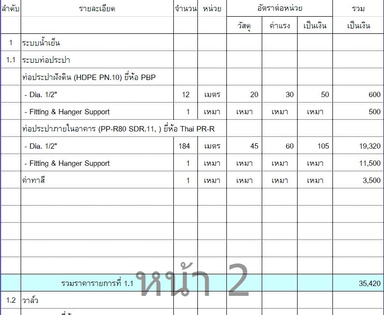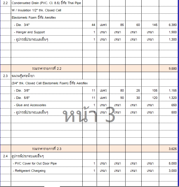 ประมาณราคา และจัดทำBOQ งานระบบสุขาภิบาล งานระบบปรับอากาศ