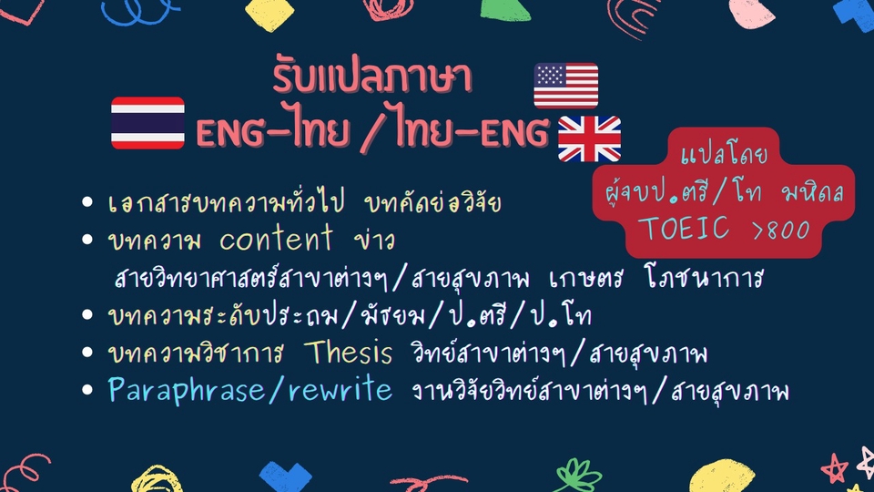 รับแปลไทย-Eng Eng-ไทย บทความ บทคัดย่อ/ธีสิสวิทยาศาสตร์ทั่วไปหรือสายสุขภาพ แปลข่าวเกษตร/อาหาร ฯลฯ