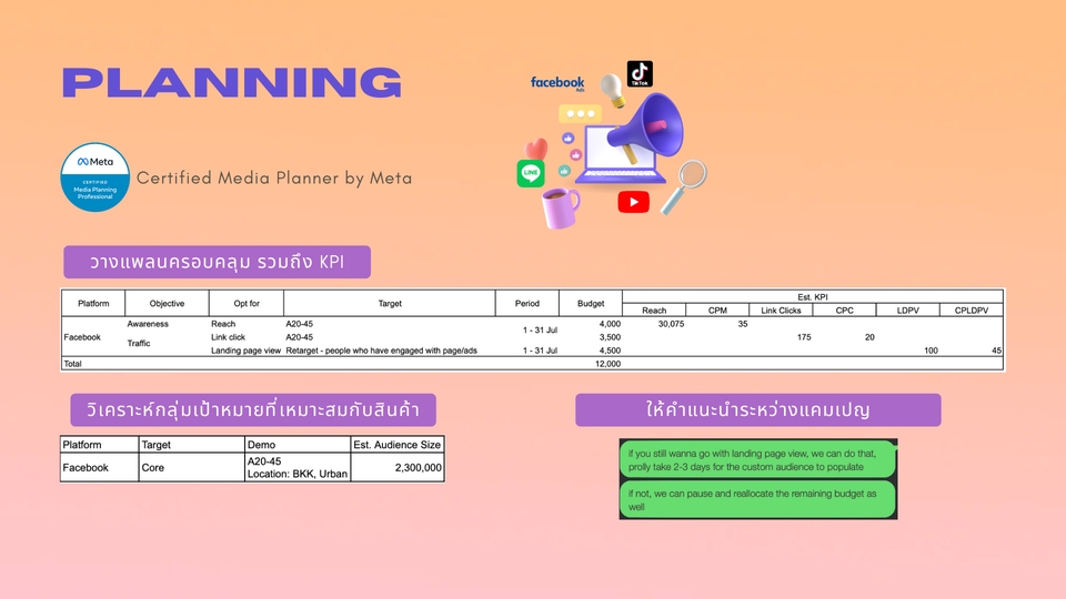 Media Planning & Optimization ปรึกษาวางแผนการยิงโฆษณา วางแพลน ยิงจริง ครบวงจรตั้งแต่ต้นจนจบ