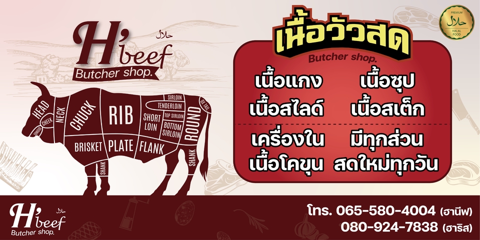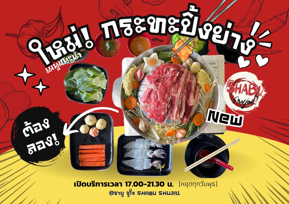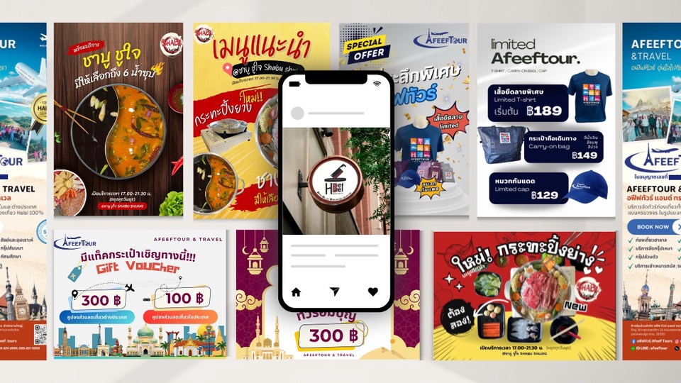 ออกแบบป้ายร้านค้า เมนูรายการอาหารโปรโมชั่น และสื่อบนโซเชียลมีเดีย