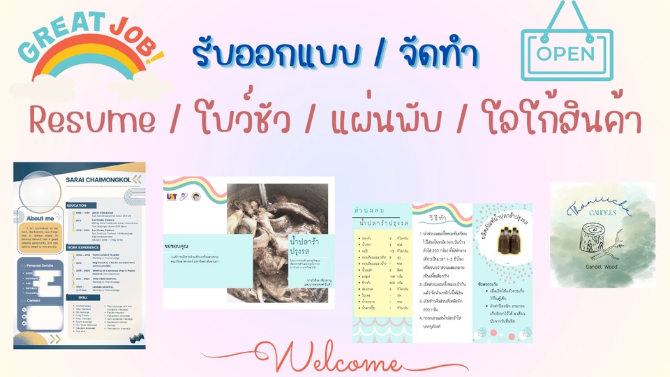รับออกแบบ / จัดทำ RESUME / โบว์ชัว / แผ่นพับ / โลโก้สินค้า ด้วย Canva
