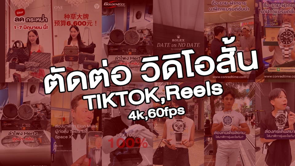 ตัดต่อวิดิโอสั้น 1 นาที - 1.30 นาที (Tiktok,Reels,Youtube Short)
