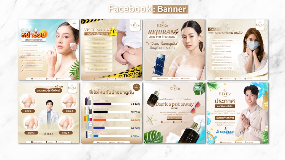 รับออกแบบโฆษณา Content และอื่นๆ สำหรับแพลตฟอร์มออนไลน์ มีประสบการณ์ทำด้านคลินิกเสริมความงามกว่า 1 ปี ลูกค้าจะได้รับไฟล์ .jpeg/.png หากต้องการไฟล์ต้นฉบับขออนุญาตจ่ายเพิ่ม 200 บาท ขั้นตอนการทำงาน 1. ลูกค้าบรีฟรายละเอียดต่างๆที่ต้องการ 2. ลูกค้าส่งไฟล์ที่จำเป็นเช่น Logo รูปภาพ Key word และอื่นๆ 3. ระยะเวลาในการทำงานต่อ 1 ชิ้นงานภายใน 1-2 วัน 4. ส่งให้อัปเดตและแก้ไข(หากมีการแก้ไข แก้ไขได้ฟรี2ครั้ง) 5. เมื่อจบงานลูกค้าจะได้รับไฟล์ jpeg หรือ png 6. หากต้องการไฟล์ต้นฉบับมีค่าใช้จ่ายเพิ่มเติม 200 บาท