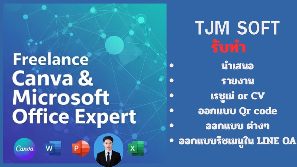 รับทำโปรแกรมทั่วๆไป (Canva,Microsoft Office (Word,Excel,Powerpoint))