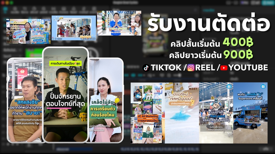 ตัดต่อคลิปสั้น TIKTOK / Reel IG / FB