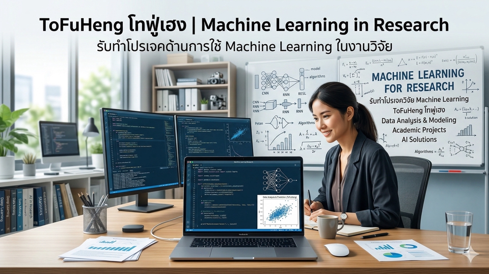 รายละเอียดงาน: บริการรับทำโปรเจคด้านการใช้ Machine Learning ในงานวิจัย ครอบคลุมตั้งแต่การตรวจสอบและเตรียมข้อมูล การเลือกวิธีวิเคราะห์ที่เหมาะสม การพัฒนาโมเดล การประเมินผลลัพธ์ ไปจนถึงการสรุปผลในรูปแบบที่เข้าใจง่ายและเหมาะกับงานวิชาการ เหมาะสำหรับนักศึกษา นักวิจัย และผู้ที่ต้องการนำ Machine Learning ไปใช้ในงานวิทยานิพนธ์ โปรเจคจบ หรืองานวิจัยเชิงวิชาการ โดยรองรับงานวิเคราะห์ข้อมูล การพยากรณ์ การจำแนกประเภท การถดถอย และการเปรียบเทียบโมเดล พร้อมช่วยลดช่องโหว่ของงานในด้านความเหมาะสมของข้อมูล ขั้นตอนการวิเคราะห์ และความสมเหตุสมผลของผลลัพธ์ ประสบการณ์และความเชี่ยวชาญ: มีความรู้ด้านการวิเคราะห์ข้อมูลและการพัฒนาโมเดล Machine Learning เพื่อใช้ในงานวิจัย สามารถช่วยออกแบบ workflow การวิเคราะห์ เลือกโมเดลที่เหมาะสมกับโจทย์วิจัย และอธิบายผลลัพธ์ในเชิงวิชาการได้ โดยรองรับการทำงานด้วย Python และเทคนิคที่ใช้บ่อยในงานวิจัย เช่น Regression, Classification, Forecasting, Feature Selection, Hyperparameter Tuning และการแปลผลโมเดลเบื้องต้น ขั้นตอนการทำงาน: 1. พูดคุยเพื่อทำความเข้าใจโจทย์วิจัย วัตถุประสงค์ และรูปแบบผลลัพธ์ที่ต้องการ 2. ตรวจสอบข้อมูลและประเมินความเหมาะสมของชุดข้อมูลก่อนเริ่มงาน 3. วางแนวทางวิเคราะห์และเลือกโมเดลที่เหมาะกับโจทย์ 4. พัฒนาโมเดล ทดสอบ และประเมินผลตามขอบเขตที่ตกลง 5. สรุปผลพร้อมส่งมอบโค้ด ไฟล์ผลลัพธ์ หรือคำอธิบายประกอบตามแพ็กเกจ 6. เปิดให้ตรวจสอบและแก้ไขเพิ่มเติมตามจำนวนครั้งที่กำหนด สิ่งที่ผู้ว่าจ้างจะได้รับ: 1. โค้ดสำหรับการวิเคราะห์หรือพัฒนาโมเดล 2. ผลลัพธ์จากโมเดลพร้อมตัวชี้วัดที่เกี่ยวข้อง 3. กราฟ ตาราง หรือภาพสรุปผลตามลักษณะงาน 4. คำอธิบายผลลัพธ์เบื้องต้นเพื่อใช้ต่อยอดในรายงานหรือบทความ 5. แนวทางปรับปรุงงานให้มีความเหมาะสมและรัดกุมมากขึ้น สิ่งที่ต้องการจากผู้ว่าจ้าง: 1. ไฟล์ข้อมูลที่ต้องการใช้วิเคราะห์ 2. รายละเอียดโจทย์วิจัยหรือคำถามวิจัย 3. วัตถุประสงค์ของงานและผลลัพธ์ที่ต้องการ 4. เงื่อนไขพิเศษ เช่น โมเดลที่ต้องการใช้ รูปแบบกราฟ หรือกำหนดเวลาส่งงาน ข้อกำหนดและเงื่อนไข: บริการนี้เป็นการช่วยวิเคราะห์ข้อมูล พัฒนาโมเดล และสรุปผลเพื่อใช้ประกอบงานวิจัย โดยเน้นความถูกต้อง เหมาะสม และความเป็นระบบของงาน ไม่รับงานที่เกี่ยวข้องกับการปลอมแปลงข้อมูล การคัดลอกผลงาน การบิดเบือนผลลัพธ์ หรือการกระทำที่ผิดจริยธรรมทางวิชาการ รวมถึงไม่รับงานที่เกี่ยวข้องกับการพนันและสิ่งผิดกฎหมาย