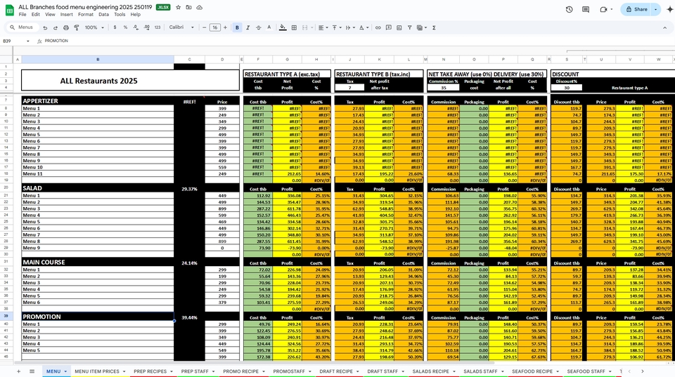 รับทำ excel สูตร ต้นทุน ราคาขาย โปรโมชั่น ค่าเฉลี่ย menu engineering อาหาร เครื่องดื่ม มากกว่า 2 สาขา โดยเชฟผู้เชี่ยชาญ มากกว่า 15 ปี เพื่อใช้วิเคราะห์ ธุรกิจ