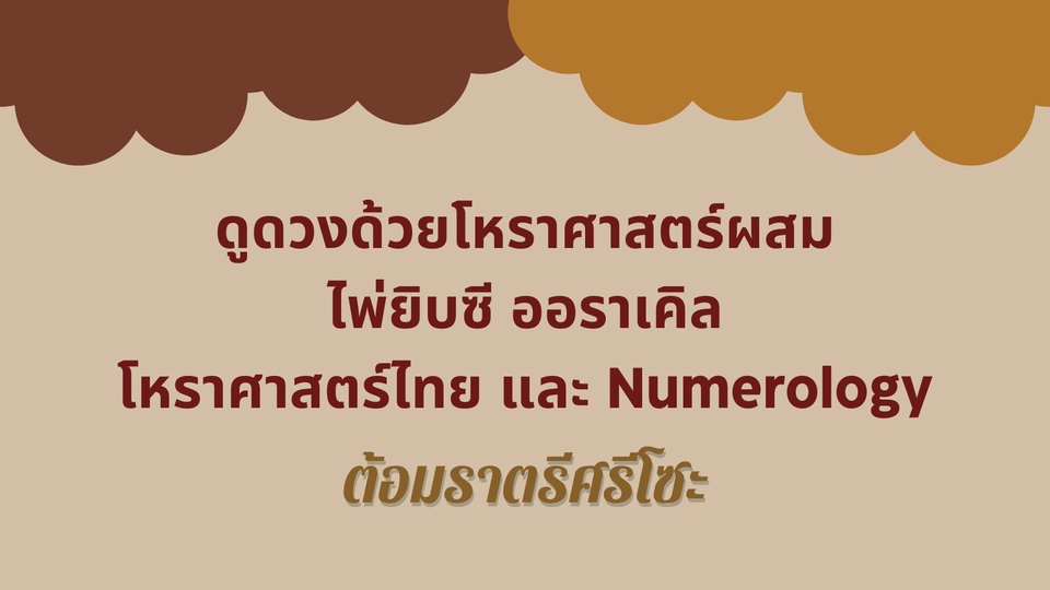 เปิดคำทำนายชีวิต ด้วยศาสตร์ผสมที่แม่นยำและเข้าใจง่าย ทั้งไพ่ทาโรต์, ไพ่ออราเคิล, โหราศาสตร์ไทย และเลขศาสตร์ (Numerology) เพื่อให้คุณมองเห็นเส้นทางชีวิตอย่างชัดเจน พร้อมแนวทางในการตัดสินใจอย่างมั่นใจ กับ ต้อมราตรีศรีโซะ