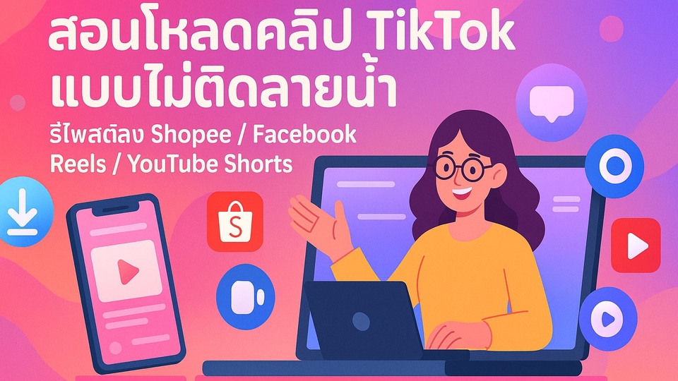 คอร์สสอนโหลดคลิป TikTok แบบไม่ติดลายน้ำ สำหรับโพสต์ลง Shopee / Reels / Shorts