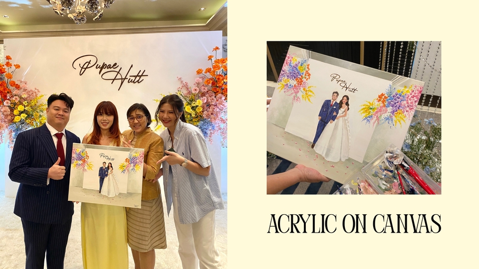 ฿7,500✨วาดภาพสดในงานแต่ง✨ เลือกได้ทั้ง - acrylic on canvas - watercolor พร้อมกรอบ 📏 ขนาด 40×50 cm 7,500 50×60 =9,500 60×80 =12,000 🚗 ในกรุงเทพฯ ไม่มีค่าเดินทาง 🌤️ ต่างจังหวัดคิด travel fee ตามระยะทาง
