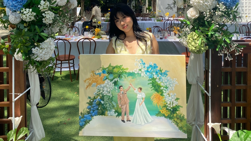 ✨ Live Wedding Painting – วาดภาพสดในงานแต่ง ✨ เก็บโมเมนต์อบอุ่นของวันพิเศษด้วย live painting ที่วาดให้แบบเรียลไทม์ เฟรมเดียวที่มีชิ้นเดียวในโลก 🎨💐 เลือกได้ทั้ง - acrylic on canvas - watercolor พร้อมกรอบ 📏 ขนาด 50×40 cm (ไซซ์อื่น ๆ แจ้งได้ค่ะ) 🚗 ในกรุงเทพฯ ไม่มีค่าเดินทาง 🌤️ ต่างจังหวัดคิด travel fee ตามระยะทาง