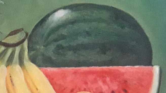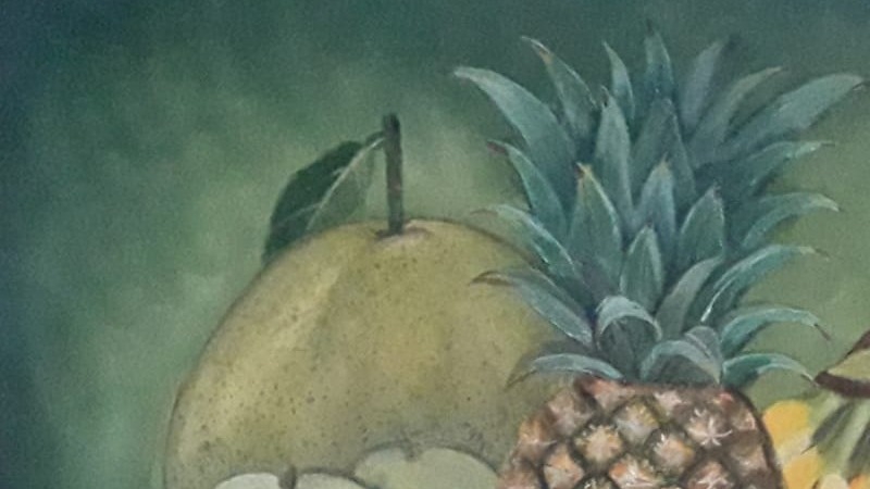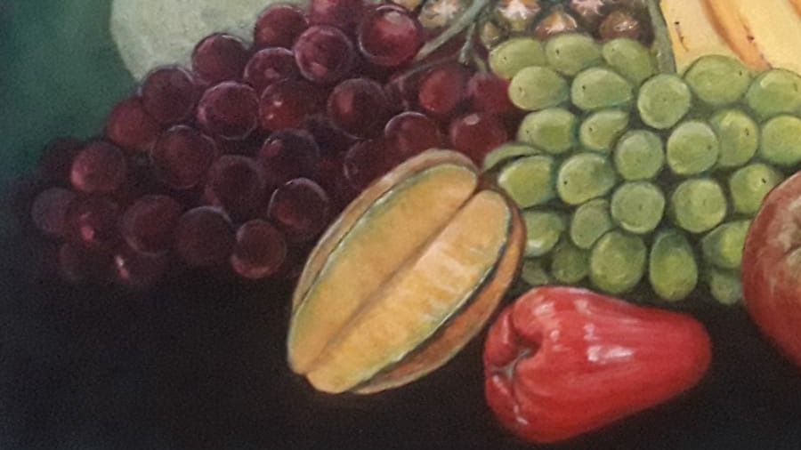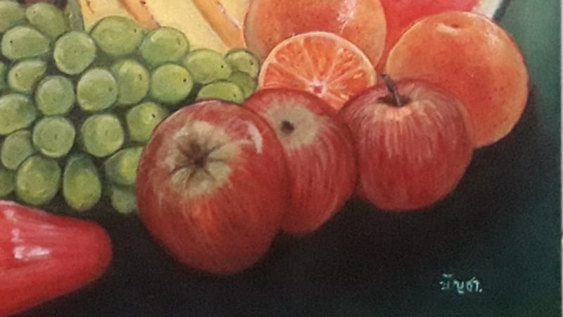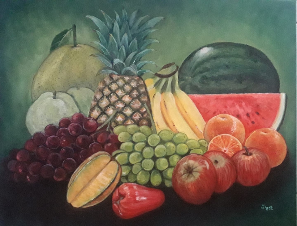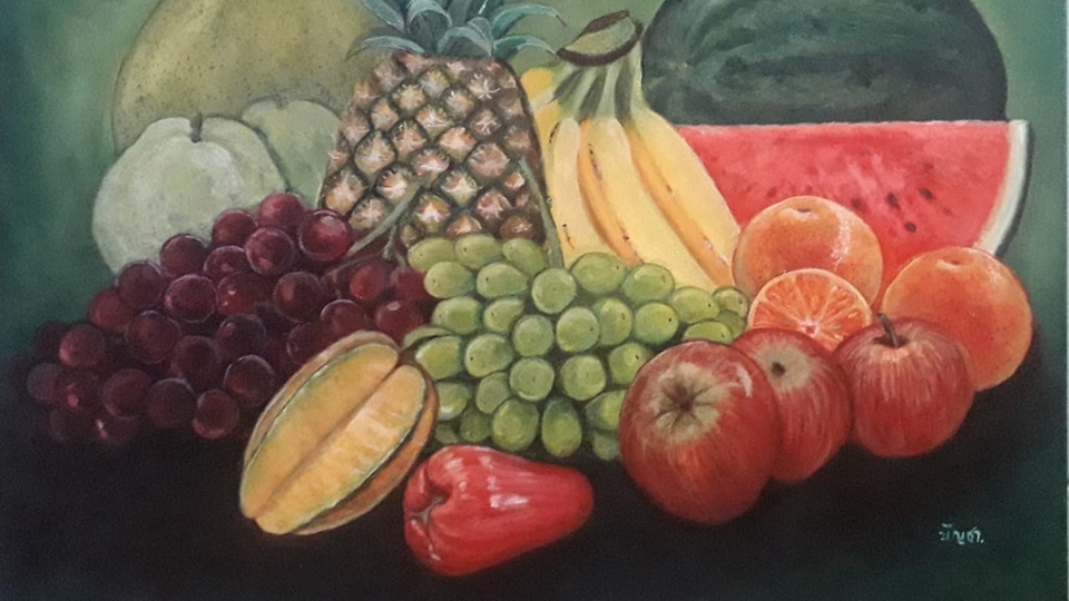 งานวาดผลไม้ด้วยสีอะคริลิคบนเฟรมผ้าใบ