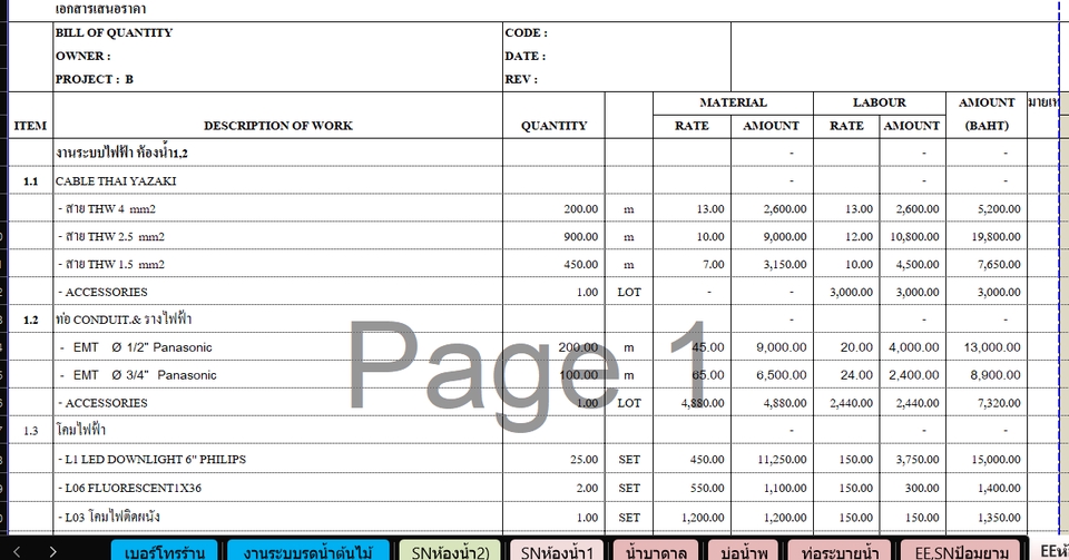 ประมาณราคาก่อสร้าง BOQ (แบบเร่งรีบเริ่มต้นที่ 1000 บาท)