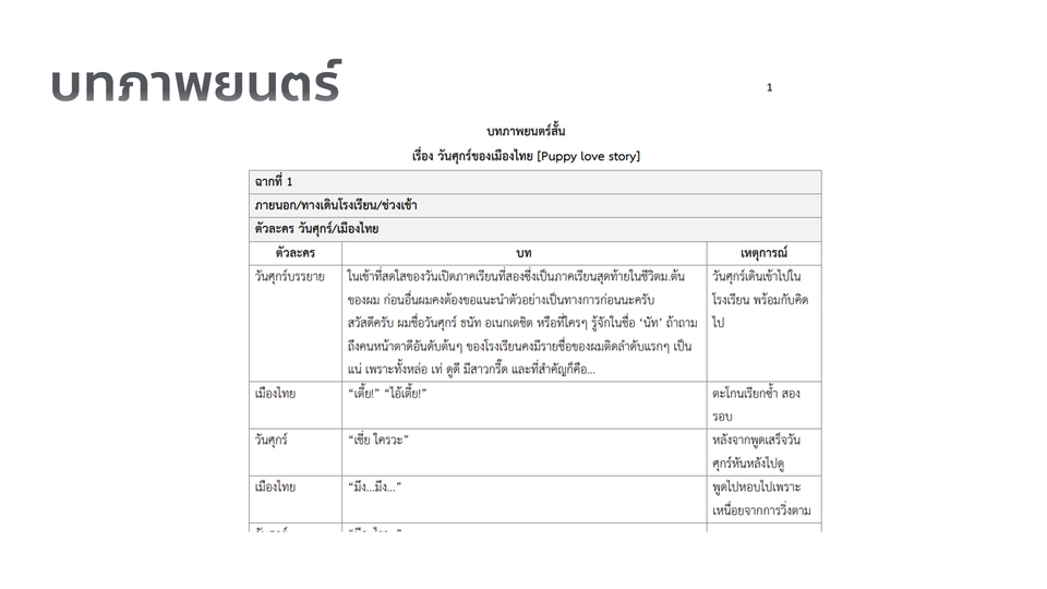 บทภาพยนตร์สั้นความยาวไม่เกิน 30 นาที/เรื่องสั้นไม่เกิน 30 หน้า
