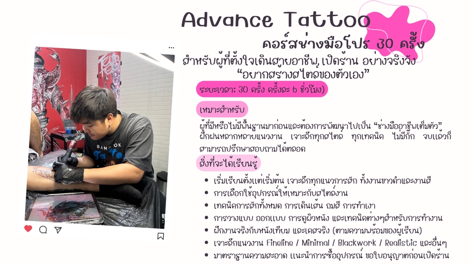 Advance tattoo course คอร์สสำหรับผู้ที่ต้องการเปิดร้านสัก และสร้างสไตล์งานของตัวเอง