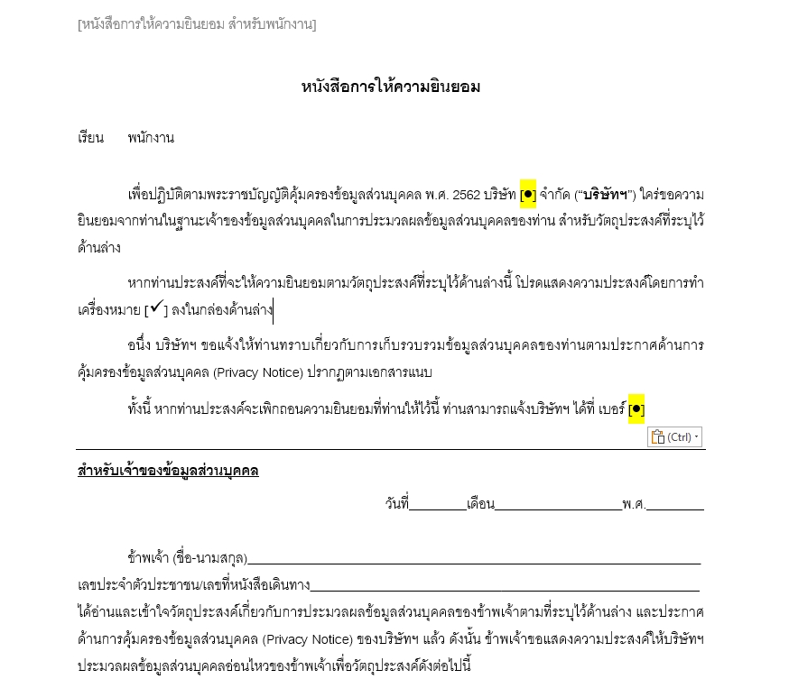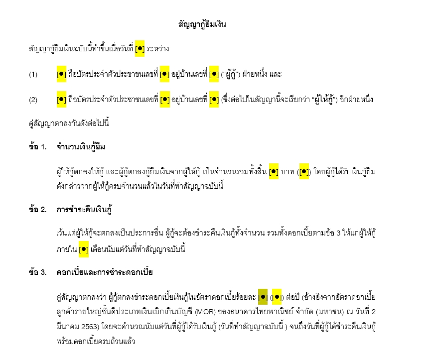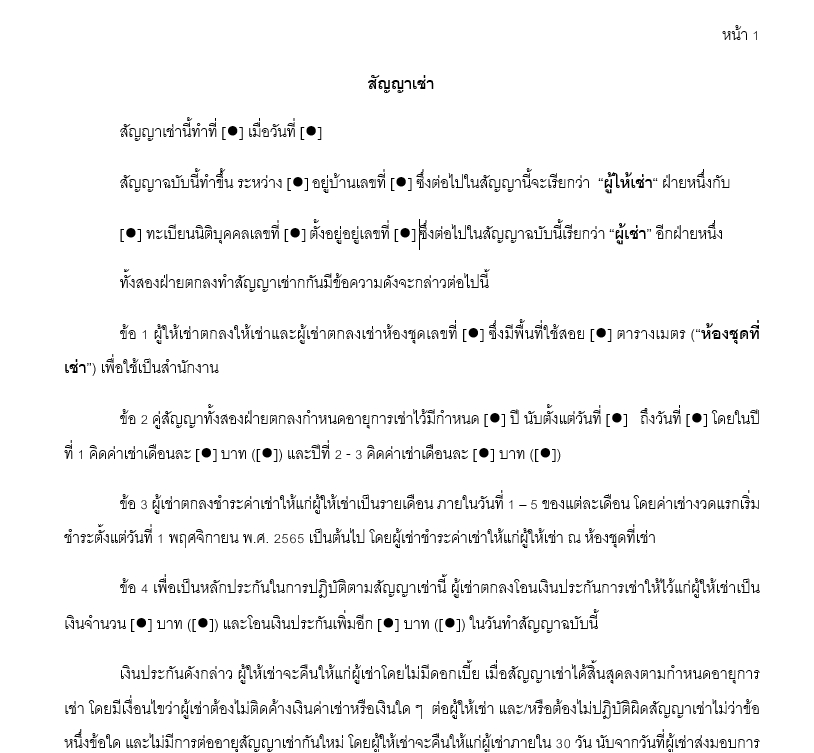 ฿500สัญญาและ/หรือเอกสารทางกฎหมาย ฉบับภาษาไทย ในรูปแบบไฟล์ .doc และ .pdf