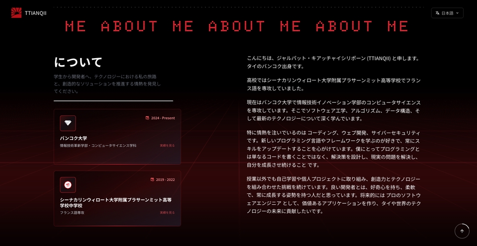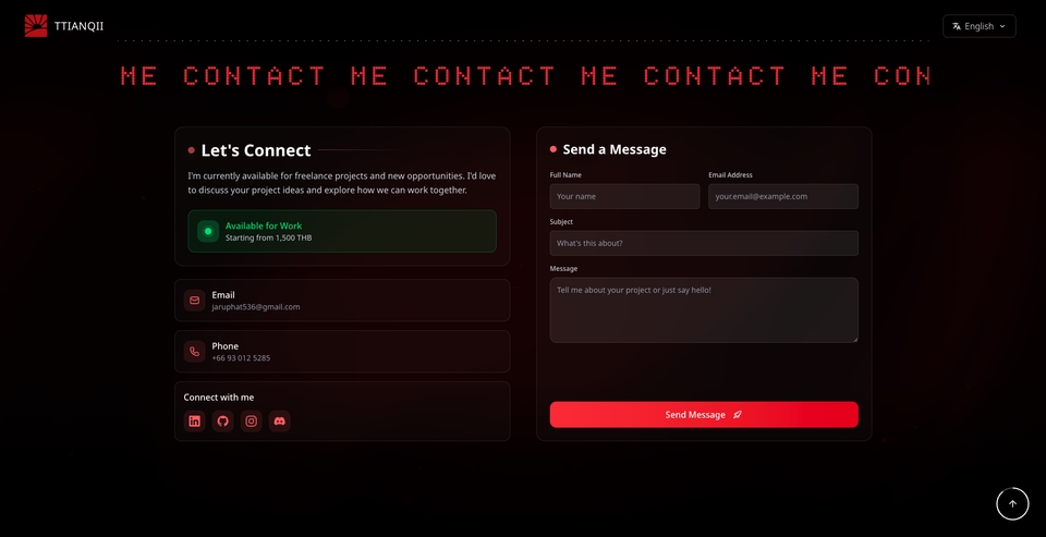 💻 รูปแบบและบริการที่รับทำ พัฒนาเว็บไซต์ใหม่ ทั้งระบบ Front-end และ Back-end ออกแบบและจัดวาง UI/UX ที่ใช้งานง่าย ทันสมัย และเหมาะกับกลุ่มเป้าหมาย เชื่อมต่อ API และระบบจัดการข้อมูล ตามความต้องการของลูกค้า ดูแล แก้ไข และปรับปรุงเว็บไซต์เดิมให้ทันสมัยและเสถียรยิ่งขึ้น พัฒนาเว็บไซต์ตามแนวคิดเฉพาะ เช่น เว็บไซต์บริษัท, ร้านค้าออนไลน์, ระบบภายในองค์กร, Landing Page, Portfolio ฯลฯ พัฒนาระบบเฉพาะทาง เช่น CMS, Dashboard ภายในองค์กร ออกแบบและพัฒนา Web Animation / Interactive Effect เพื่อเพิ่มความโดดเด่นและประสบการณ์การใช้งาน (UX) ที่ดียิ่งขึ้น 🛠️ เทคโนโลยีที่ถนัด Front-end: React, Next.js, Tailwind CSS Back-end: Node.js, Golang, Java, JS/TS ⭐ จุดเด่นของการทำงานกับฉัน เข้าใจทั้งระบบ Front-end และ Back-end ทำให้การพัฒนาเป็นไปอย่างราบรื่น มีประสบการณ์ทำงานจริงในองค์กร ที่เน้นการใช้งานจริง ออกแบบทันสมัย รองรับทุกอุปกรณ์ (Responsive Design) ใส่ใจรายละเอียด ใช้งานง่าย พร้อมปรับปรุงตาม Feedback พัฒนา อนิเมชันและเอฟเฟกต์เว็บไซต์ เพื่อความสวยงามและน่าสนใจ มีความรับผิดชอบ ตรงเวลา พร้อมให้คำปรึกษาอย่างมืออาชีพ 🔎 ขั้นตอนการทำงาน พูดคุยและเก็บความต้องการ ออกแบบ UI/UX ด้วย Figma พัฒนาเว็บไซต์ (Development Phase) ทดสอบและปรับปรุง (Testing & Review) ส่งมอบงาน (Delivery & Handover) ====ENG VERSION==== 💻 Services Offered Develop new websites with both Front-end and Back-end systems Design and structure UI/UX that is modern, user-friendly, and tailored to the target audience Integrate APIs and data management systems based on client requirements Maintain, update, and improve existing websites for better performance and stability Build websites according to client concepts such as corporate websites, e-commerce, internal platforms, landing pages, portfolios, etc. Develop specialized systems such as CMS or internal dashboards Create engaging web animations and interactive effects to enhance user experience (UX) 🛠️ Core Technologies Front-end: React, Next.js, Tailwind CSS Back-end: Node.js, Golang, Java, JS/TS ⭐ Key Strengths Strong understanding of both front-end and back-end, ensuring seamless development Hands-on experience in real-world organizational projects Modern design with full responsiveness across all devices Detail-oriented, user-focused, and adaptable to feedback Skilled in developing website animations and interactive effects for enhanced engagement Responsible, punctual, and committed to providing professional consultation 🔎 Workflow Requirement gathering and discussion UI/UX design with Figma Website development (Development Phase) Testing and refinement (Testing & Review) Final delivery and handover (Delivery & Handover) https://ttianqii.dev