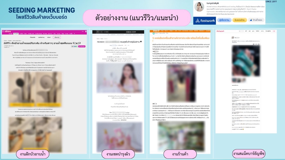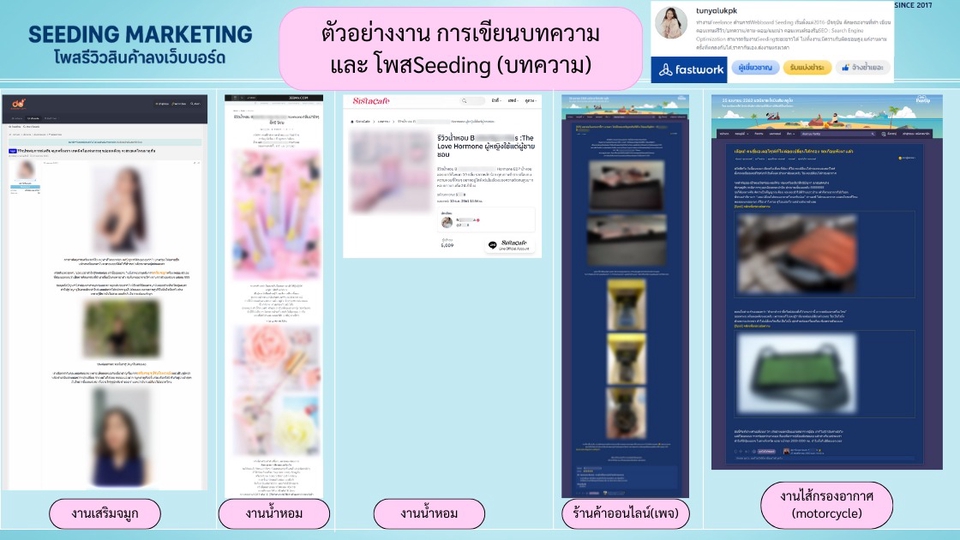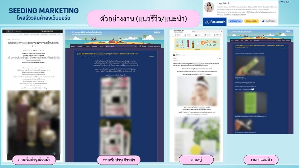 Seeding Marketing โพสรีวิวสินค้าลงเว็บบอร์ด มีส่วนลดจากFreelanceเอง (TUNYALUKPK_@FASTWORK)