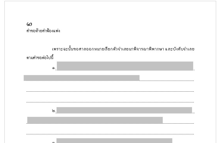 1.ให้คำปรึกษาปัญหากฎหมาย ผ่านแชท หรือ ทางโทรศัพท์ ปรึกษาเบื้องต้นไม่มีค่าใช้จ่าย 2.ทำหนังสือสัญญา เอกสารต่างๆ เช่นสัญญากู้ยืม,ค้ำประกัน,จ้างทำของ,สัญญาเช่า,แชร์ และอื่นๆ ทำหนังสือทวงหนี้,บอกกล่าว,บอกเลิก ไฟแนนซ์ และอื่นๆ ท่านจะได้รับเอกไฟล์ pdf,word,หรือให้ส่งทางไปรษณีย์ หรือตามตกลง =ทำเอกสารเริ่มต้นฉบับละ500บาท 4.ทำคำฟ้งแพ่ง,อาญา,คดีครอบครัว ยื่นคำให้การ ยื่นคำร้อง เช่น จัดการมรดก,เรียกค่าเสียหาย,ขับไล่,โกงเจ้าหนี้,ยักยอก,ฉ้อโกง,ดูหมิ่น,หมิ่นประมาท,หย่า,ชู้ ,อุบัติเหตุ และอื่นๆ 5.สืบ 6.บังคับคดี อัตราค่าจ้างว่าความดำเนินคดีขึ้นอยู่กับความยากง่ายของคดี ขั้นตอนดำเนินงาน -แจ้งรายละเอียด -กำหนดระยะเวลาจ้างงาน -ตกลงราคาว่าจ้าง ตามตกลง -ส่งมอบงาน -ตรวจสอบงาน ยินดีให้คำปรึกษาสามารถทักมาสอบถามรายละเอียดเบื้องต้นได้ครับ ขั้นตอนการทำงาน 1. แจ้งรายละเอียดของงานทำความเข้าใจชิ้นงาน 2. กำหนดระยะเวลาจ้างงาน 3. ตกลงค่าจ้างของการทำงาน ผู้ว่าจ้างจ่ายค่าจ้าง หรือ จ่ายค่าจ้างเมื่อส่งมอบ หรือตามแต่ตกลง 4. ผู้รับจ้างส่งมอบงาน 5. ผู้ว่าจ้างตรวจสอบความเรียบร้อยของงาน