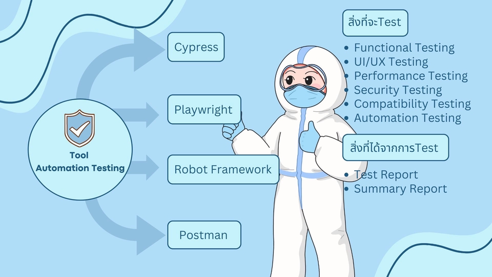 รับงาน Automation Tester Toolผมจะใช้ Robot framework, Postman , Playwright , Cypress