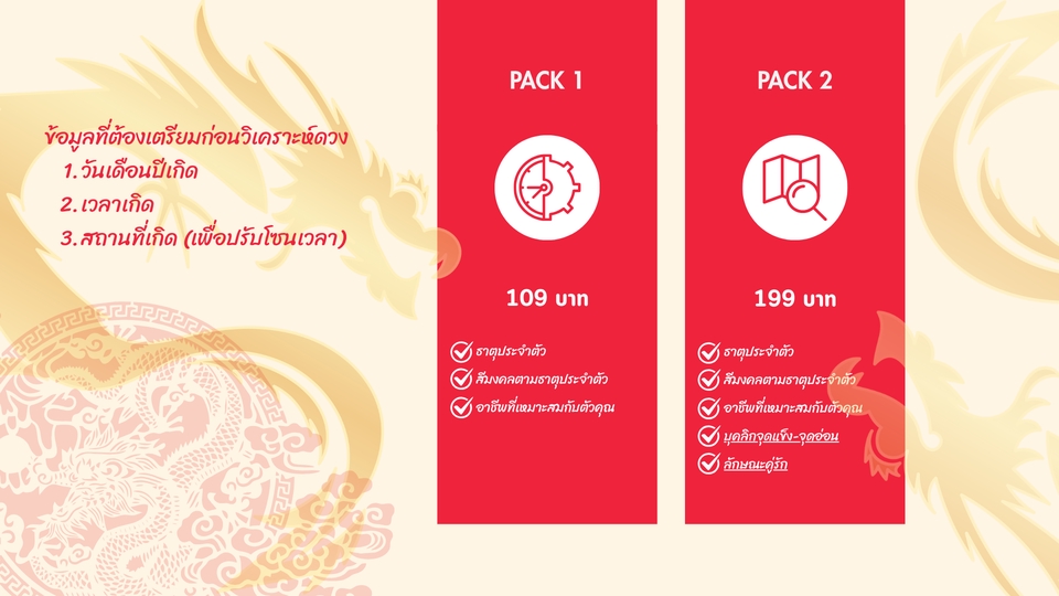 ฿109วิเคราะห์เจาะลึก 3 เรื่องสำคัญ เพื่อใช้วางแผนชีวิต ✅ ธาตุประจำตัว ✅ สีมงคล ✅ อาชีพที่ใช่ รูปแบบการส่งผลวิเคราะห์ 📝 ส่งให้แบบ PDF เก็บไว้อ่านซ้ำได้ทุกเมื่อ