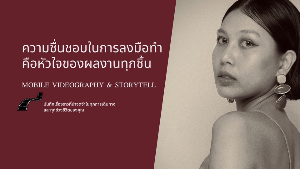 ไม่ใช่ช่างภาพ แต่เป็น Mobile Videographer: บันทึกความสุขที่ได้ลงมือทำ 🎥 Mobile Videography & Storytelle เราสร้างสรรค์ผลงานภาพเคลื่อนไหวจากแรงบันดาลใจที่ได้เห็นผู้คนมีรัก มีความสุขในทุกการเดินทาง 🤍✨ ให้เราถ่ายทอดเรื่องราวชีวิตของคุณด้วยวิดีโอ 4K ที่น่าจดจำ ความชื่นชอบในการลงมือทำ คือหัวใจของผลงาน 4K ทุกชิ้น