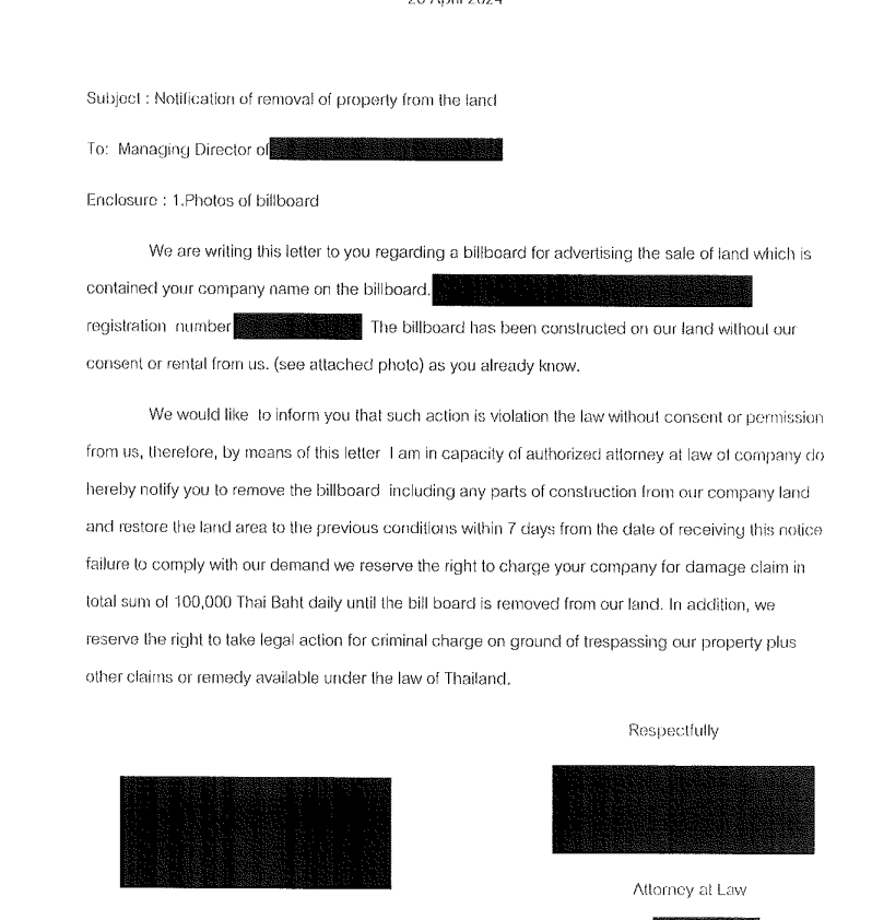 ร่างหนังสือบอกกล่าวทวงถาม - Draft Legal Notice