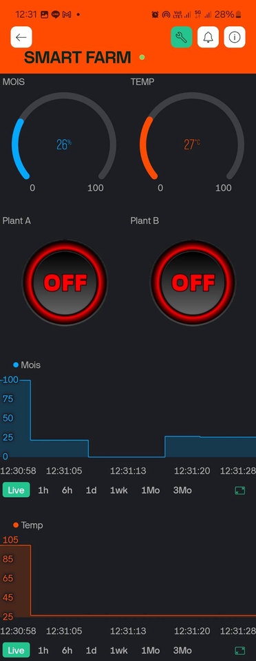 ฿30,0001. ถังเก็บน้ำ 300 ลิตร 2. ระบบท่อส่งน้ำ PVC และ PE 3. มินิสปริงเกอร์แบบมีวาล์ว 4. โซลินอยวาล์ว 5. เซ็นเซอร์ความชื้น 6. เซ็นเซอร์ความอุณหภูมิ 7. กล่องควบคุม 8. ปั้มน้ำ 1HP 9. Dashboard