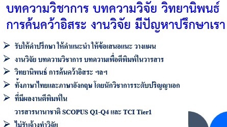 บทความวิชาการ บทความวิจัย วิทยานิพนธ์ การค้นคว้าอิสระ งานวิจัย บริการให้คำปรึกษาในการปรับปรุงแก้ไข