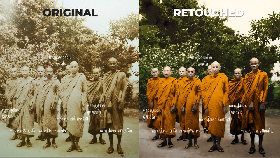 ฿1,800เป็นการซ่อมแซมและปรับปรุงภาพถ่าย ที่มีความเสียหายระดับทั่วไป เช่น สีซีด จาง เพี้ยน มีร่องรอยฉีกขาดบางส่วน ฯลฯ จำนวน 5 รูป - สามารถระบุชนิดของไฟล์ที่ต้องการมาได้ ไม่ว่าจะเป็น PSD. JPG, PNG ฯลฯ (หากไม่ระบุ จะจัดส่งเป็น JPG ให้โดยอัตโนมัติ) - ระยะเวลาซ่อมแซมงานโดยปกติไม่เกิน 24 ช.ม.