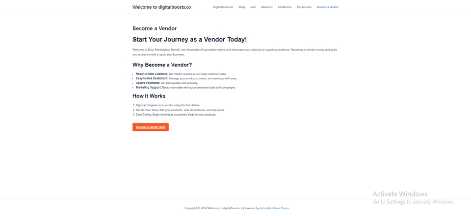 Multi-Language (รองรับ 2-3 ภาษา) การขายสินค้าดิจิทัล (ระบบดาวน์โหลด) เชื่อมต่อ Payment Gateway เช่น Omise, PayPal, หรือ Stripe ระบบ Multi-Vendor พื้นฐาน เช่น ผู้ขายสร้างโปรไฟล์สินค้าและจัดการคำสั่งซื้อเอง เหมาะสำหรับ: ธุรกิจขนาดเล็กที่ต้องการเริ่มต้นตลาดกลาง ระดับปานกลาง (Mid-Tier Studio หรือ บริษัทขนาดเล็ก) เน้นความเสถียรและรองรับการขยายตัวในอนาคต ขั้นตอนการทำงาน 1. เก็บรวมรวมความต้องการของผู้จ้างและกำหนดเงื่อนไขการสร้าง website 2. เลือกโดเมนเนม 3. เตรียมโฮสติ้ง 4. ติดตั้ง program 5. ตั้งค่าเว็บไซต์ 6. สร้างและจัดการเนื้อหา 7. ปรับแต่งและทดสอบ 8. เผยแพร่เว็บไซต์ 9. ตั้งค่า SEO และ Social Media