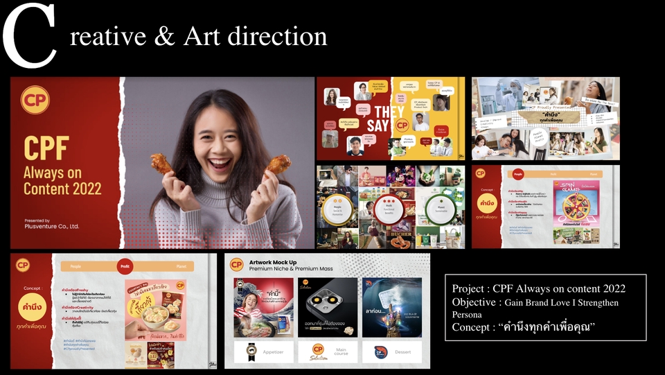 รับทำครีเอทีฟคอนเทนต์ แคมเปญ และสร้างสรรค์เนื้อหาการตลาด การโฆษณาทุกรูปแบบ คิดงานจาก Insight ของกลุ่มเป้าหมาย ,Behavior ,เล่นกับเทรนด์ ,อินไซด์คน ,ไม่น่าเบื่อ สร้างผลลัพธ์ได้ตรงตามObjective ทุกผลงานมี Concept ครอบ ไม่คิดแบบลอย ๆ มีLogic มีที่มาที่ไป ขั้นตอนการทำงาน 1. รับบรีฟจากลูกค้า 2. หาข้อมูล อินไซด์ เพื่อนำมาประกอบการทำงาน 3. วิเคราะห์ คิดงาน ให้ตอบโจทย์ที่ได้รับ 4. ลงรายละเอียดงาน นำส่งลูกค้า 5. รับคอมเมนต์ ปรับแก้ 6. ส่งงานเสร็จสมบูร์ เสร็จสิ้นการทำงาน