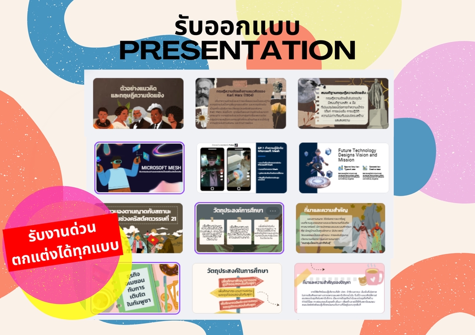 ฿900ออกแบบสไลด์ 11-20 หน้า จัดความเหมาะสมของเนื้อหา บทความ เอกสารธุรกิจต่าง ๆ ส่งไฟล์ PowerPoint/PDF