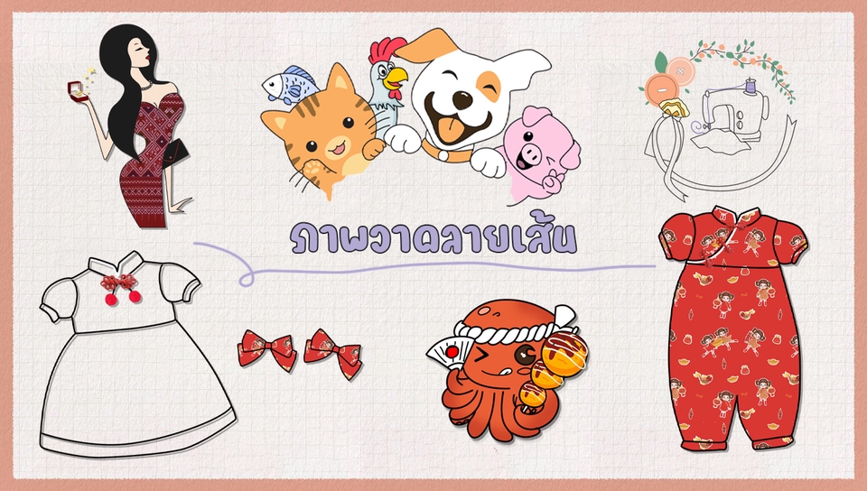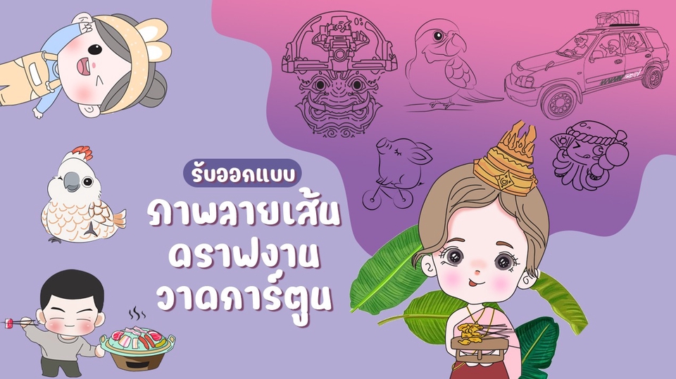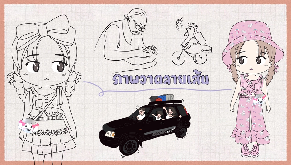 รับวาดลายเส้น vector การ์ตูนน่ารัก ดราฟงาน