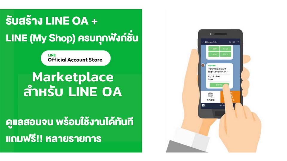 รับสร้าง LINE OA + LINE (My Shop) ครบทุกฟังก์ชั่น ดูแลสอนจน พร้อมใช้งานได้ทันที แถมฟรี!! หลายรายการ แนะนำการใช้งานอย่างละเอียด ตอบโจทย์การนำเสนอและสื่อสารสินค้า,บริการของคุณ กับเส้นทางการสื่อสารและนำเสนอรวมถึงการสั่งซื้อสินค้า ที่สะดวก รวดเร็วด้วย LINE OA+Line Myshop ราคาคุ้มค่า บริการมืออาชีพ จ่ายครั้งเดียวจบ ขั้นตอนการทำงาน 1. พูดคุยรายละเอียดสิ่งที่ลูกค้าต้องการ ตกลงราคา ลูกค้ารับใบเสนอราคา ชำระเงิน เริ่มงาน 2. ลูกค้าส่งรายละเอียดต่างๆ ที่ต้องใช้ดำเนินการ 3. ดำเนินการจนแล้วเสร็จ ใช้เวลา 1-3 วัน โดยประมาณ 4. ส่งตัวอย่างให้ลูกค้าตรวจทาน ลูกค้า1สามารถแจ้งแก้ไขเพิ่มเติมได้ฟรี (สูงสุด 2 ครั้ง) 5. ดูแลปรึกษาและสอนการใช้งานต่างๆให้กับลูกค้า จนลูกค้าสามารถใช้งานเองได้ 6. ส่งมอบงาน ลูกค้ากดรับงาน