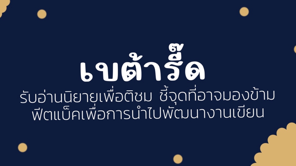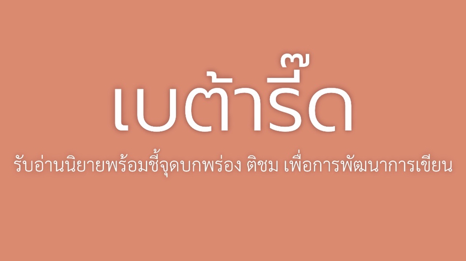 รับอ่านนิยาย เป็นเบต้ารี๊ด นักอ่านคนแรกเพื่อติชมและให้คำแนะนำ ให้คำปรึกษาเกี่ยวกับนิยาย
