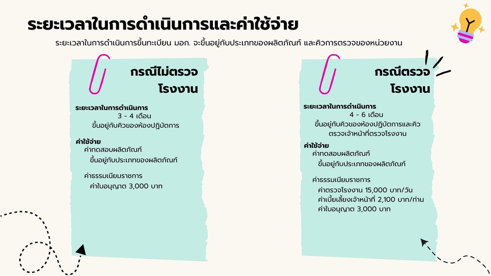 - • 2. รายงานผลการวิเคราะห์ พร้อมแนวทางการดำเนินการต่อ เช่น ต้องยื่นอนุญาต มอก. หรือไม่ต้อง